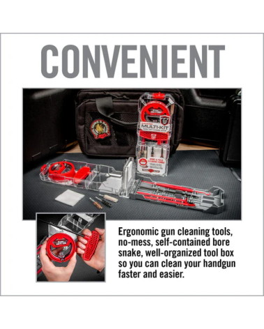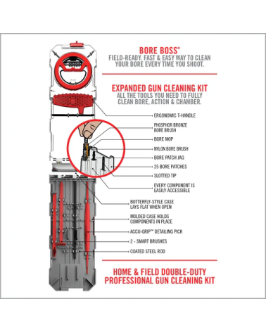 - Compartiment à accès facile (le kit .223/5.56 mm comprend également une brosse et des tampons pour la chambre étoilée)