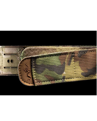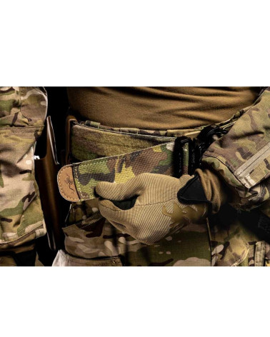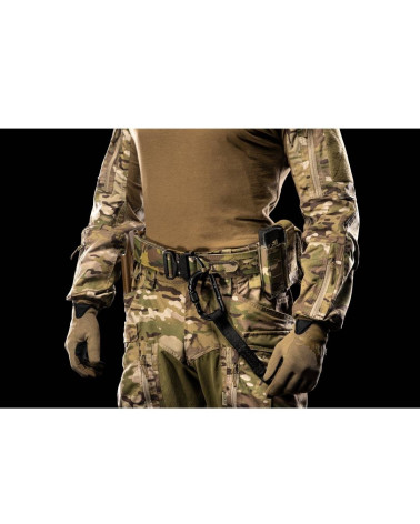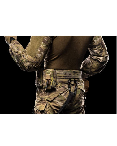 Dans cette nouvelle version, le tissu LAHYCO est intentionnellement plus serré que la largeur de la sangle : ce léger écart de quelques millimètres entre le tissu découpé au laser et le bord de la sangle permet d'éviter l'usure par frottement et d'augmenter ainsi la durée de vie opérationnelle de la ceinture. En outre, l'épaisseur plus importante des sangles supérieures et inférieures MOLLE PALS rend la ceinture beaucoup plus robuste que le modèle précédent.