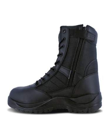 La CENTURION 8.0 CT SZ de Magnum est une botte tactique conçue pour la sécurité et le confort. Elle est dotée d'une coque en composite pour protéger les orteils, d'une fermeture à glissière latérale pour un enfilage rapide, et d'une tige haute offrant un bon maintien de la cheville. Sa semelle antidérapante est résistante aux hydrocarbures et aux chocs, adaptée aux environnements exigeants. Confortable et durable, elle est idéale pour les professionnels de la sécurité.