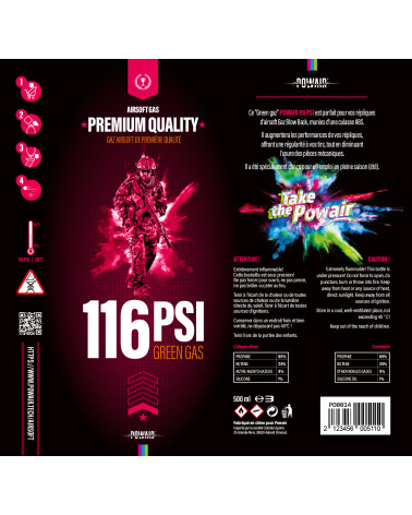 La bouteille de gaz 116 PSI 500ML de Powair est conçue pour offrir une pression stable de 116 PSI, idéale pour les réservoirs de réplique d'airsoft. Avec sa capacité de 500 ml, elle assure une alimentation en gaz optimale pour des performances fiables lors des matchs. Elle est compacte, pratique et facile à utiliser, ce qui en fait un accessoire incontournable pour les joueurs d'airsoft.