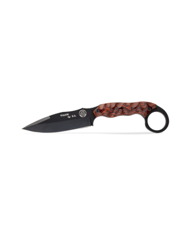 Le Talim Toxifié Pakkawood Cocobolo Wildsteer associe élégance et efficacité. Sa lame noire époxy et son manche en bois toxifié à la main en font une pièce de self-défense aussi performante qu’esthétique. Conçu avec l’expertise de la Pekiti Tirsia Tactical Association.