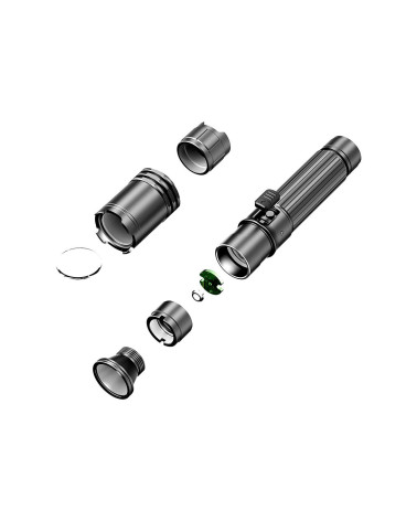 Rechargeable via USB Type-C, elle inclut une batterie 18650 2600mAh et un indicateur de charge pour surveiller l’autonomie restante. Son système de mémorisation des modes et son verrouillage arrière garantissent une utilisation simplifiée et sécurisée.