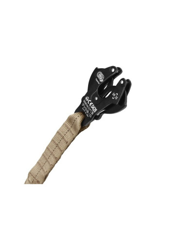 La sangle FROG a une fermeture automatique d'accrochage au contact de point d'ancrage.