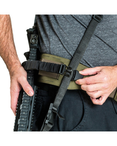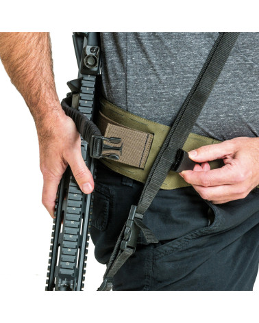 Sangle amovible, pouvant être fixée sur le côté de l'équipement grâce à deux boucles MOLLE. Permet de fixer un MP ou une arme longue en position de repos.