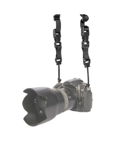 La boucle enfichable permet d'enfiler soit un crochet d'arme, soit une sangle pour œillets de sangle, soit un cordon de serrage de 3 mm pour caméra (2 cordons de 3 mm de diamètre chacun). Le réglage de la longueur est intégré dans la déviation de la sangle. La charge maximale de la suspension de la caméra est de 85 kilogrammes et elle doit être remplacée lorsque le noyau blanc intérieur devient visible.