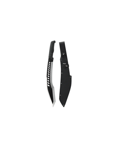 Son manche ergonomique en polymère antidérapant offre une prise en main confortable et sûre, même dans des conditions humides. La machette est équipée d'une garde de sécurité et d'un étui en nylon pour un transport facile et sécurisé. Idéale pour couper, tailler ou dégager des obstacles, elle est un compagnon fiable pour les aventuriers et les professionnels du terrain.