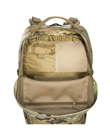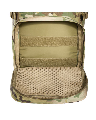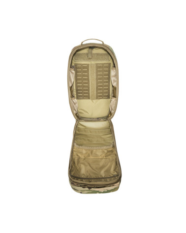 Sac à dos de combat universel de petite taille en multicam avec un volume de 22 litres, deux poches amovibles, des poches latérales élastiques, un système auto-agrippant MOLLE dans le compartiment principal et un système MOLLE découpé au laser sur le devant pour un montage individuel d'équipements supplémentaires. Les bretelles et la ceinture abdominale sont amovibles.